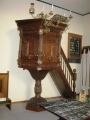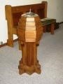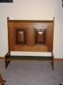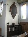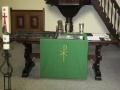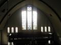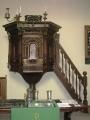 Galerij interieur 22 april 2024 1e steen 1e steen met College van Kerkvoogden Interieur met balkon bij ingang Interieur Kansel Kansel Avondmaalstafel en Paaskaars Doopvont Paaskaars Knielbank Bloemenstandaard Liturgiebord Tekstbord met doophek rechterzijde Tekstbord met doophek linkerzijde Gekleurde glas-in-lood ramen bij balkon